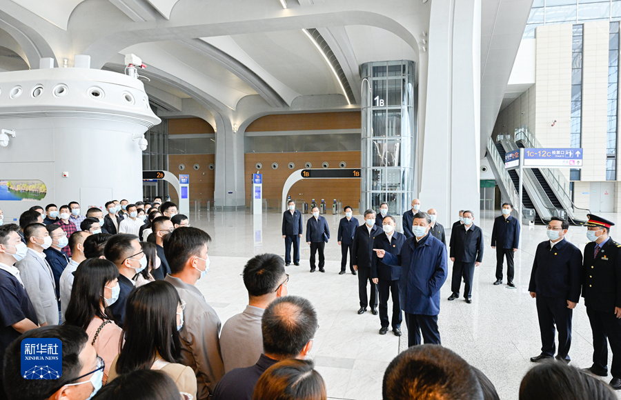 原标题:习近平在河北雄安新区考察并主持召开高标准高质量推进雄安新区建设座谈会时强调 坚定信心保持定力 稳扎稳打善作善成 推动雄安新区建设不断取得新进展 李强蔡奇丁薛祥陪同考察并出席座谈会 中共中央总书记、国家主席、中央军委主席习近平10日在河北省雄安新区考察,主持召开高标准高质量推进雄安新区建设座谈会并发表重要讲话。他强调,雄安新区已进入大规模建设与承接北京非首都功能疏解并重阶段,工作重心已转向高质量建设、高水平管理、高质量疏解发展并举。要坚定信心,保持定力,稳扎稳打,善作善成,推动各项工作不断取得新进展。 5月10日,中共中央总书记、国家主席、中央军委主席习近平在河北省雄安新区考察,并主持召开高标准高质量推进雄安新区建设座谈会。这是10日下午,习近平主持召开高标准高质量推进雄安新区建设座谈会并发表重要讲话。(殷博古 摄) 5月10日,中共中央总书记、国家主席、中央军委主席习近平在河北省雄安新区考察,并主持召开高标准高质量推进雄安新区建设座谈会。这是10日下午,习近平主持召开高标准高质量推进雄安新区建设座谈会并发表重要讲话。(燕雁 摄) 中共中央政治局常委、国务院总理李强,中共中央政治局常委、中央办公厅主任蔡奇,中共中央政治局常委、国务院副总理丁薛祥陪同考察并出席座谈会。 5月10日,习近平在河北省委书记倪岳峰、省长王正谱陪同下,深入雄安新区的高铁站、社区、建设工地等,就高标准高质量推进雄安新区建设进行调研。 5月10日,中共中央总书记、国家主席、中央军委主席习近平在河北省雄安新区考察,并主持召开高标准高质量推进雄安新区建设座谈会。这是10日上午,习近平在雄安站考察。(李学仁 摄) 5月10日,中共中央总书记、国家主席、中央军委主席习近平在河北省雄安新区考察,并主持召开高标准高质量推进雄安新区建设座谈会。这是10日上午,习近平在雄安站候车大厅同旅客亲切交流。(申宏 摄) 当天上午,习近平乘高铁前往雄安新区,抵达后首先考察了雄安站的建设运行情况。雄安站是雄安新区开工建设的第一个重大基础设施项目,具有标志性意义。习近平先后察看站台、候车大厅、站外广场,了解雄安站建设运营和所在的昝岗片区规划建设情况。习近平指出,雄安站是雄安新区的交汇车站,要进一步完善联通雄安站和雄安新区的交通“微细血管”,提升人流物流聚集和疏散的效率。要把昝岗片区建设成为高端高新产业集聚区,让各方来客一到雄安,就能感受到雄安新区扑面而来的现代化新气象。 5月10日,中共中央总书记、国家主席、中央军委主席习近平在河北省雄安新区考察,并主持召开高标准高质量推进雄安新区建设座谈会。这是10日上午,习近平在容东片区南文营社区党群服务中心考察。(李学仁 摄) 5月10日,中共中央总书记、国家主席、中央军委主席习近平在河北省雄安新区考察,并主持召开高标准高质量推进雄安新区建设座谈会。这是10日上午,习近平在容东片区南文营社区食堂同就餐的社区老人亲切交流。(李学仁 摄) 习近平随后乘车来到容东片区南文营社区。该社区安置了安新、容城两县回迁群众5000多人。习近平先后来到党群服务中心和社区食堂,同社区工作人员、现场办事群众、就餐的社区老人等亲切交流,仔细查看民情台账,对社区开展的便民养老服务等表示肯定。习近平强调,我一直牵挂着回迁群众,看到大家生活好,我很欣慰。建设好雄安新区,重要的是衔接好安居和乐业,让群众住得稳、过得安、有奔头。要同步推进城市治理现代化,从一开始就下好“绣花”功夫,积极推进基本公共服务均等化,构筑新时代宜业宜居的“人民之城”。 5月10日,中共中央总书记、国家主席、中央军委主席习近平在河北省雄安新区考察,并主持召开高标准高质量推进雄安新区建设座谈会。这是10日上午,习近平在容东片区南文营社区回迁居民李敬和家中看望。(李学仁 摄) 习近平走进回迁居民李敬和家中看望。李敬和告诉总书记,2021年11月迁入新居,房子宽敞明亮,住得十分舒心,日子越过越红火。习近平强调,建设雄安新区是党中央作出的重大战略决策,大家响应国家号召,积极配合,为国家战略实施作出了贡献。他勉励年轻一代在强国建设、民族复兴的进程中,坚定信心,学好本领,造福桑梓,做社会主义事业的建设者和接班人。 5月10日,中共中央总书记、国家主席、中央军委主席习近平在河北省雄安新区考察,并主持召开高标准高质量推进雄安新区建设座谈会。这是10日上午,习近平在容东片区南文营社区考察时向社区居民挥手致意。(殷博古 摄) 临别时,居民们高声欢呼“总书记好”,习近平向大家挥手致意。他深情地对大家说,河北是我工作过的地方,我对这里充满感情,把这里建设好是我的心愿。建设雄安新区是千年大计、国家大事,既不能心浮气躁,也不能等靠要,要踏实努力,久久为功。 雄安城际站枢纽位于雄安新区启动区的核心位置。习近平来到雄安城际站及国贸中心项目建设现场,看沙盘、登平台,远眺建设工地,了解启动区重大基础设施项目及重点疏解项目规划建设进展情况。习近平指出,交通是现代城市的血脉。血脉畅通,城市才能健康发展。要在建设立体化综合交通网络上下功夫,在充分利用地下空间上下功夫,着力打造一个没有